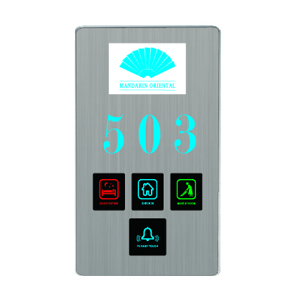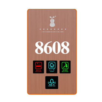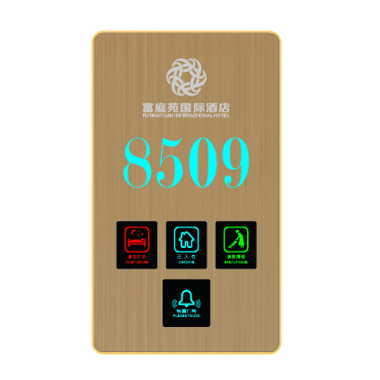 电子门牌主要用于酒店客房,是酒店给客房主人提供的清晰、简单的人性化服务,使客人轻松拥有属于自己的空间,功能包括请勿打扰,请即清理、请稍候,门铃开关、房号显示,电子门牌极具人性化设计,让客房内外沟通随心所欲。