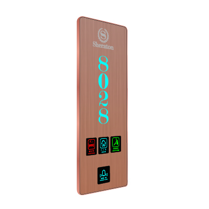 1.金属铝拉丝面板锌合金边框。 2.炫彩玻璃或金属铝拉丝面板,高端大气,突出体现个性化酒店标志,彰显酒店档次。