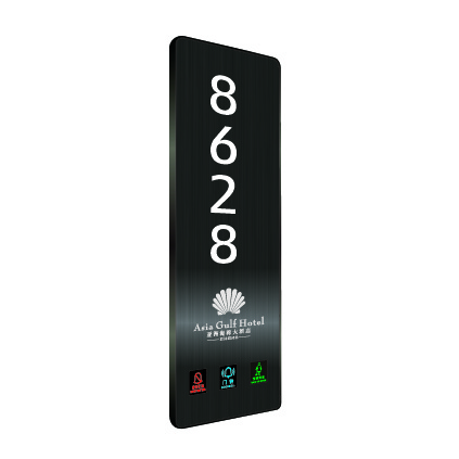 1.金属铝拉丝面板锌合金边框。 2.炫彩玻璃或金属铝拉丝面板,高端大气,突出体现个性化酒店标志,彰显酒店档次。